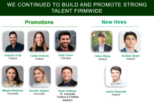 On the team front, we promoted 6 individuals who have been important contributors to the firm’s success. In addition, we brought on 3 talented new hires within our Analyst Program.